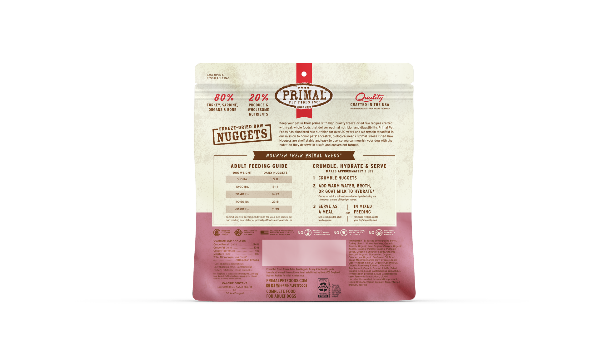 Primal Canine; Freeze Dried Nuggets Turkey & Sardine Formula;