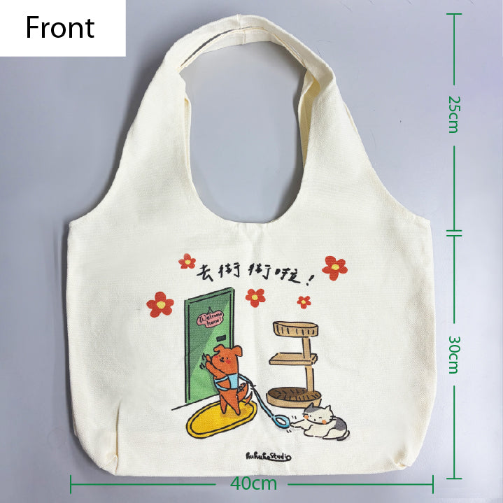 這款「NPV 去街街袋」非常方便,無論是要「執便便」,還是「清尿尿」,奴主們都可以輕易從袋中取出物品。而袋上的插畫,是由本地插畫師Huhuhe 細心觀察各位主子後,悉心描繪出的貓狗日常,家中一位主子不停「扭」出街,而另一位貓主子則守候在家,當狗繩是逗貓棒,非常有趣。